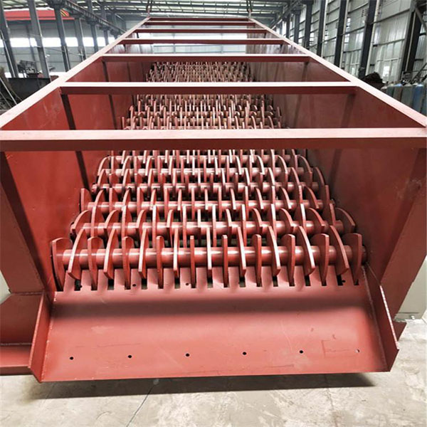 由電機(jī)驅(qū)動(dòng)帶有不規(guī)則的形狀裝置的連動(dòng)軸進(jìn)行翻動(dòng),篩面由很多根直線排布回轉(zhuǎn)軸承構(gòu)成,在滾軸上有相等的篩盤排布,滾軸通過齒輪帶動(dòng)輪鏈傳動(dòng)而旋轉(zhuǎn)的,其旋轉(zhuǎn)的的方向與原料流動(dòng)的方向一致,軸與軸之間有間隙,鑲嵌在軸上的不規(guī)則裝置托起大粒度物料向前運(yùn)動(dòng),因?yàn)楹Y軸是按各不相同的運(yùn)行方向設(shè)計(jì)的,所以當(dāng)材料在運(yùn)行方向高的地方運(yùn)行時(shí)的速度較快;當(dāng)材料在運(yùn)行方向較低的地方運(yùn)行時(shí)的速度較低緩。兩種各不相同的速度運(yùn)行下的材料,在篩面某一地方相匯時(shí)開始做軸向運(yùn)作,如此一來(lái)就使材料均衡性地分布在篩面上,提高篩分的工作效率,小顆粒物料則落入分離機(jī)底部由皮帶機(jī)送出。