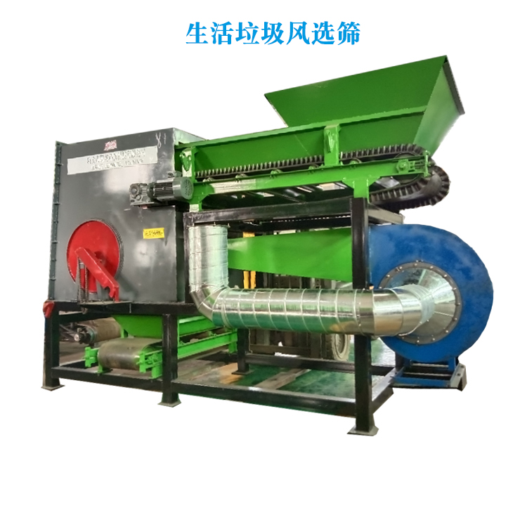 生活垃圾分選機設有進料機、電動處理器、棒條篩、回料帶、風選機和出塑料罩垃圾,垃圾從進料口進入機體,經電動處理器處理使土、塑料和其它物料分離,棒條篩將土篩選出,回料帶與輸送帶連接,輸送帶上設有磁選機,該設備可以連續作業,大大提高了分揀效率,能有效的將金屬制品進行分揀回收利用。