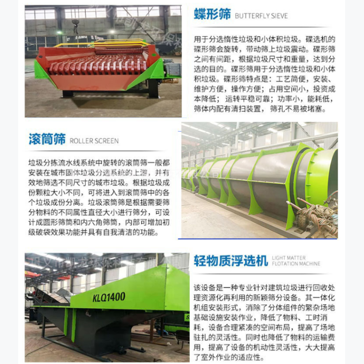 垃圾分揀設備以其智能分揀和自動化輸送技術等,可以幫助垃圾處理廠高效實現垃圾分類和分揀,減少手動操作,提升生產效率。