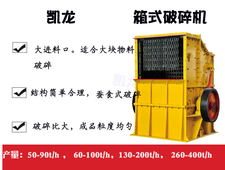 方箱細碎破碎機 適用物料:各種礦石、石灰巖、石英巖、河卵石、花崗巖、玄武巖、煤矸石、建筑垃圾等。